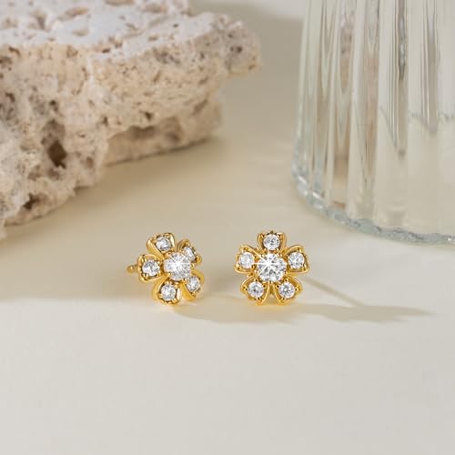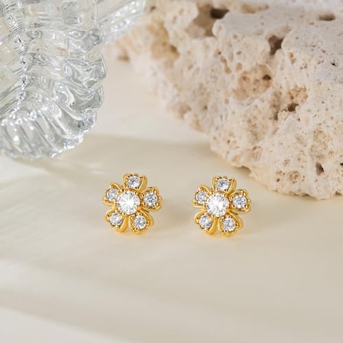 • [A PRESENT WORTH KEEPING] These cz earrings for women are mini works of art. The cz studs earrings for women are thoughtful birthday present for a close friend, or a keepsake she'll treasure. Give her these gold flower earrings for women that feels personal, pretty, and timeless