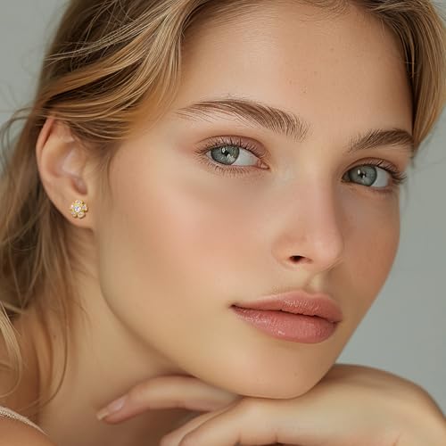 Gold Studs Earrings for Women 14k Gold Earrings for Women Flower Stud Earring for Womens Stud with Cubic Zirconia Casual Vibe and Edgy Feel CZ Studs Earring for Womens 10mm 7
