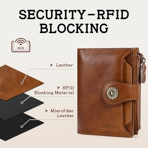 HOT ! HKCLUF Wallet Women,Small Genuine Leather Bifold Wallet Womens,RFID Blocking Wallet for Women Card Holder Purse With Removable ID Window(darkbrown)