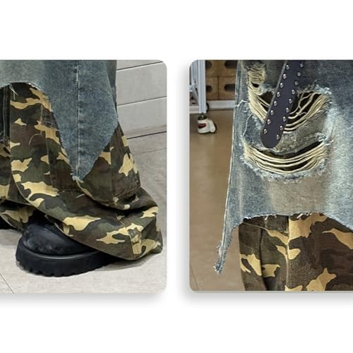• [Stylish Design]:Featuring a trendy camouflage print, these jeans showcase a cool look that blends fashion with function for a standout streetwear style.