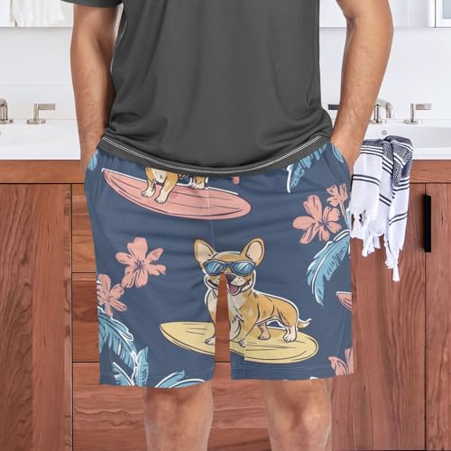 Corgi Dog Surfing Pajama Bottom Shorts for Men Soft Casual Sleep Lounge Shorts with Pockets S-XXL 1