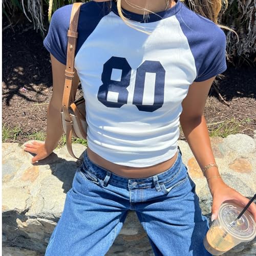 • Features: Summer y2k graphic baby tee for women, featuring with crewneck, short sleeve, color block and number graphic design, chic and trendy, jersey crop tops for women