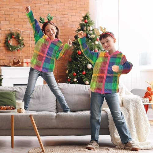 HOT ! GuoChe Rainbow Plaid Sherpa Jacket