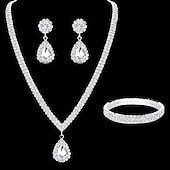 More information about Bridal Jewelry Sets Three-piece Rhinestone Alloy Earrings Necklace Bracelets Women's Stylish Simple Luxury Tennis Chain Drop Jewelry Set For Wedding Party Evening Engagement dress to impress