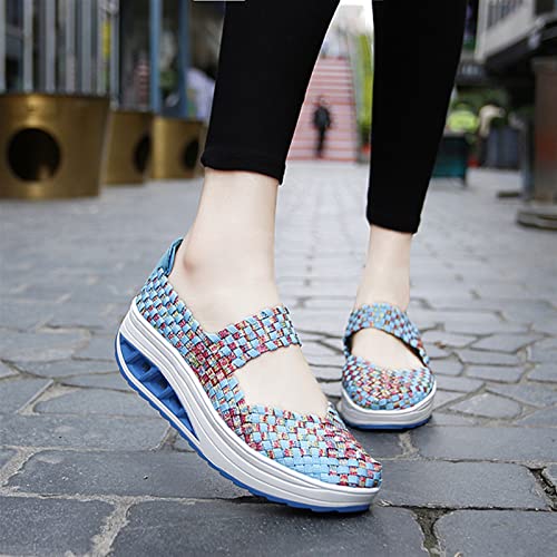 Women's Platform Wedge Sandals Slip on Woven Pumps Mary Jane Shoes Comfortable Walking Shoes 6