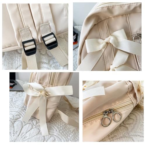 Japanese girl bow backpack cute college style large capacity backpack pleats fresh and sweet (Off-White) 6