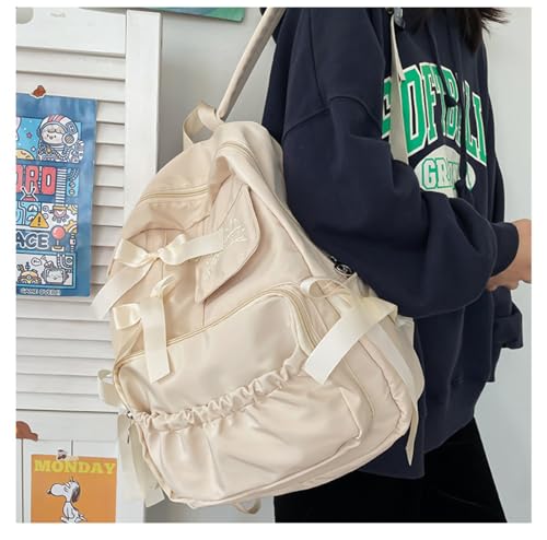 Japanese girl bow backpack cute college style large capacity backpack pleats fresh and sweet (Off-White) 1