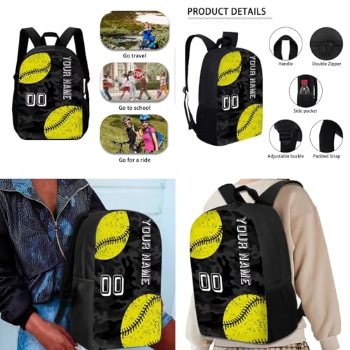 More information about Softball School Bag Kids Personalized Backpack with Name for Boys Girls with Lunch Box Pencil Case, 17 Inch Backpack for School Large Bookbag for Elementary Middle School, Black and Yellow