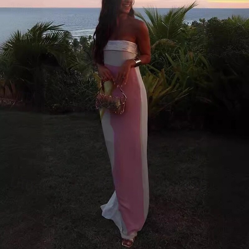 HOT ! Women's Long Dress Maxi Dress Prom Dress Party Dress Fashion Party Tea Party Going out Regular Fit Flower Sleeveless Strapless Pink Summer