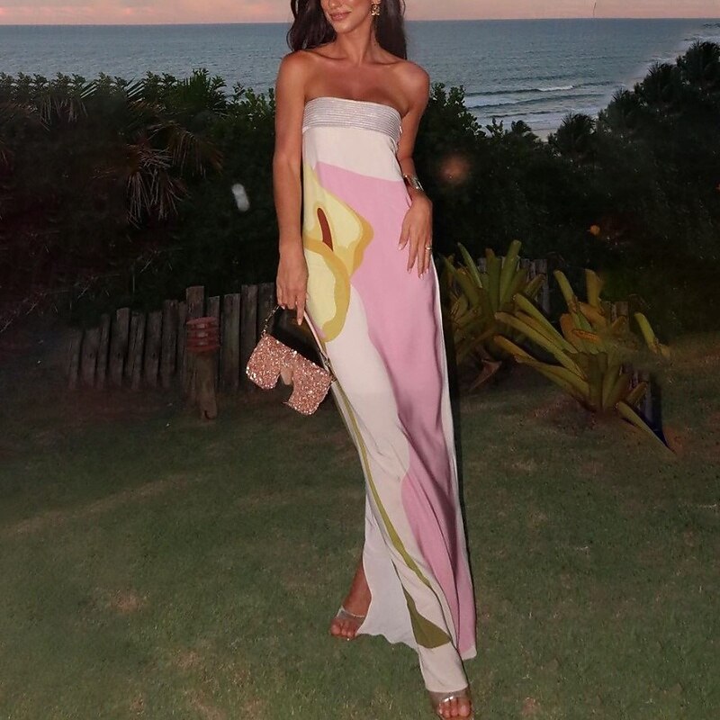 More information about Women's Long Dress Maxi Dress Prom Dress Party Dress Fashion Party Tea Party Going out Regular Fit Flower Sleeveless Strapless Pink Summer