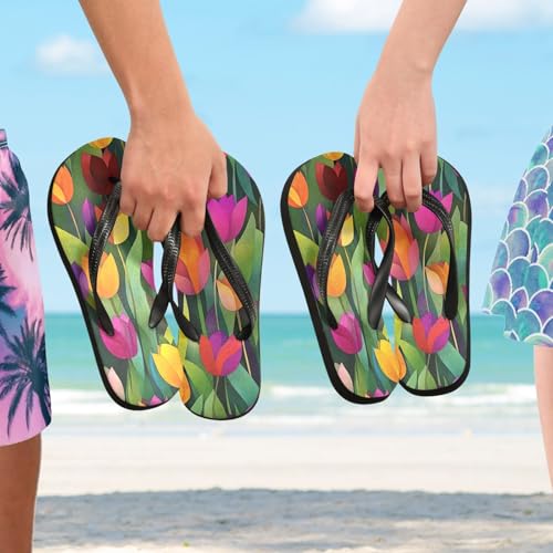 Yellow Pink Purple Tulips Flip Flop Beach Summer Casual Sandal for Women & Men Shower Shoes 20859034 6