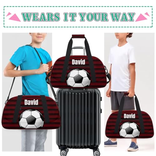 Custom Kids Duffel Bag Sport Gym Bag, Personalized Carry On Weekender Bag Travel Bag Gift for Girl Boys Soccer Ball Red 6