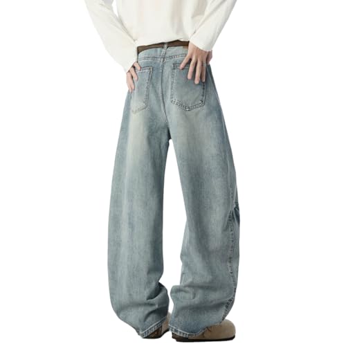 More information about Baggy Jeans Men Washed Barrel Jeans Men Vintage Casual Streetwear for Skater Wide Leg Denim Pants Parachute