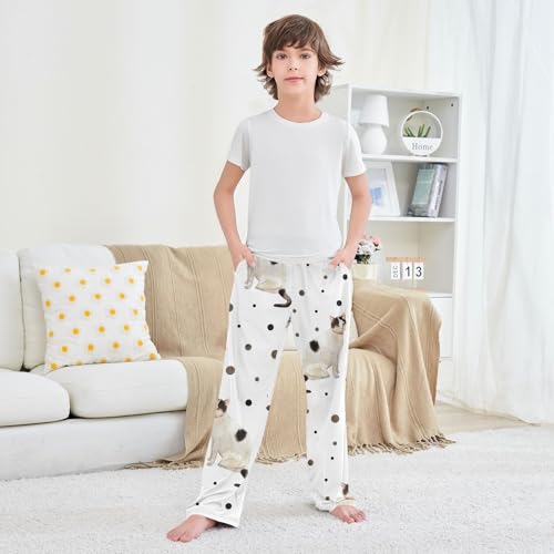 Watercolor Cat Boys Pants Boys Athletic Pants Long Pant for Boywith Pockets Wide-Leg Size 6-14Y 3