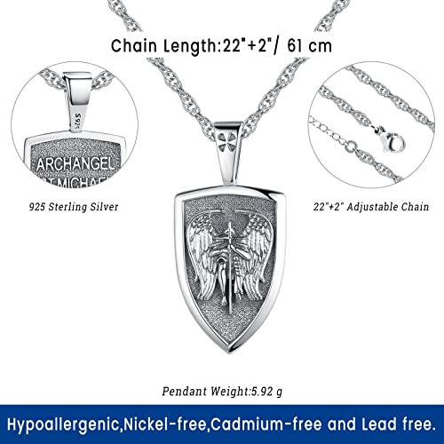 • Real Solid 925 Sterling Silver st michael pendant, Lead-free, nickel-free, cadmium-free and skin-friendly. Passed SGS Inspection. Suitable for people with sensitive skin. This is a full of strength St Michael medal, suitables for men or women as a gift. It is a timeless addition to your everyday look. Beautiful design, can also be worn as a couple necklace.