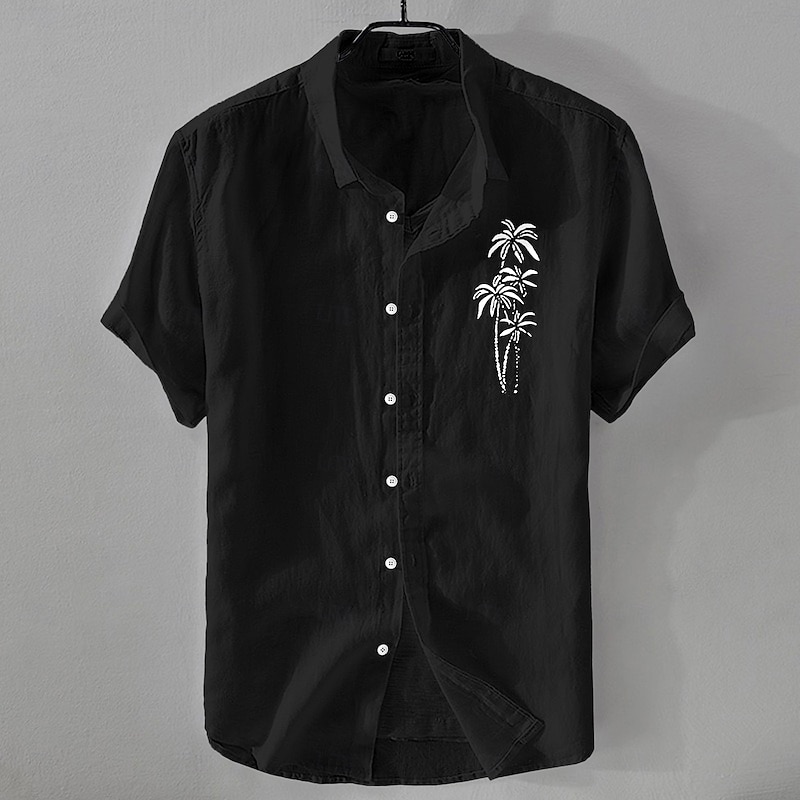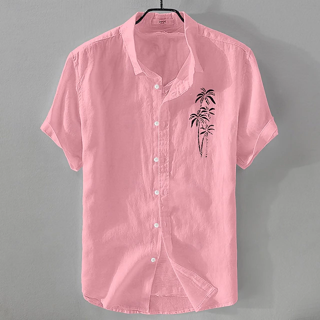 HOT ! Men's Shirt Linen Shirt Summer Shirt Beach Shirt Button Up Shirt Coconut Tree Vacation Casual Black White Light Green Pink Short Sleeve Turndown Summer Clothing Apparel