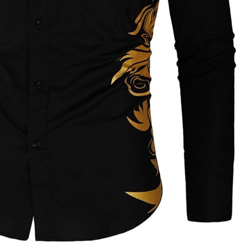DGHM-JLMY Men's Totem Gold Printed Long Sleeve Shirt Hipster Slim Fit Button Up Party Dress Shirts Gold Shiny Stylish Shirt 6