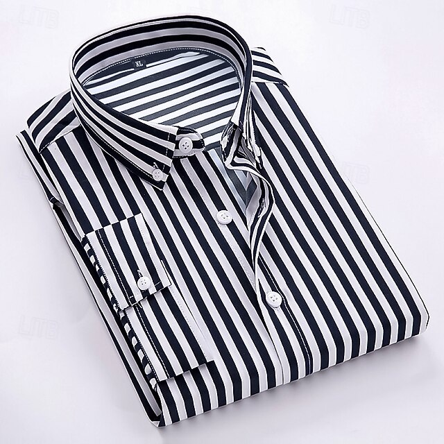 More information about Men's Dress Shirt Button Down Shirt Striped Shirt Collared Shirt Wedding Work Black White Red Navy Blue Long Sleeve Collar Clothing Apparel
