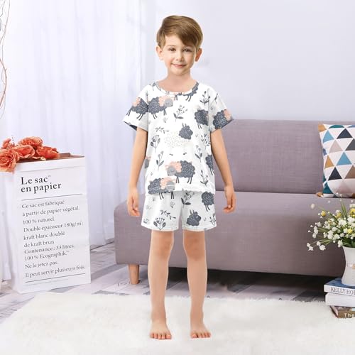 ALAZA Cartoon Animals Sheep Leaf Pajamas Short Sleeve 2 Piece Sleepwear Top and Bottom Pajama Set Unisex 6