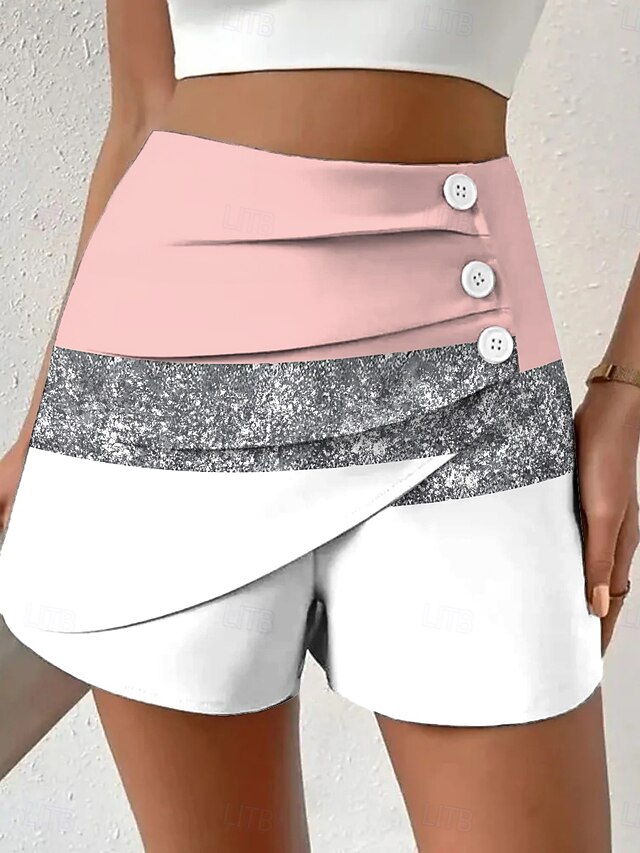 More information about Women's Chinos Shorts Vacation Vintage Ethnic Style Short High Waist Graphic Geometric Color Block Pleated Inelastic Vacation Street Daily Violet Robin's Egg Blue Pink Green Summer Spring Regular Fit