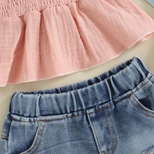 Mubineo Toddler Baby Girl Summer Clothes Denim Outfits Jeans Shorts Sleeveless Tops Ripped Shorts Set Outfit 7