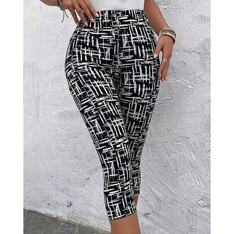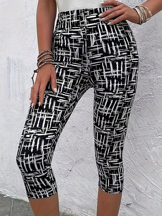 HOT ! Women's Capri Pants Leggings Cozy Leggings Streetwear Casual Calf-Length Natural Geometic Print Comfy Outdoor Comfortable Outdoor Vacation Casual Daily Black Summer Regular Fit
