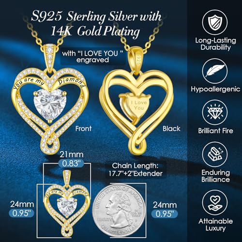 • 🌹Jewelry Gift for Women : Moissanite infinity heart necklace is a perfect gift for any occasion. Engraved "I Love You" including birthday, anniversary, valentine's day, mother's day, engagements. Christmas gifts for wife, girlfriend, mom, her.