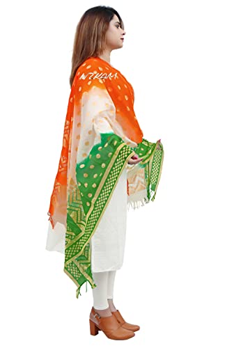 HOT ! Women's & Girls Art Silk Net Ethnic Dupatta/Chunni With Gold Zari Work (2.25 Meter), Tiranga, Free Size