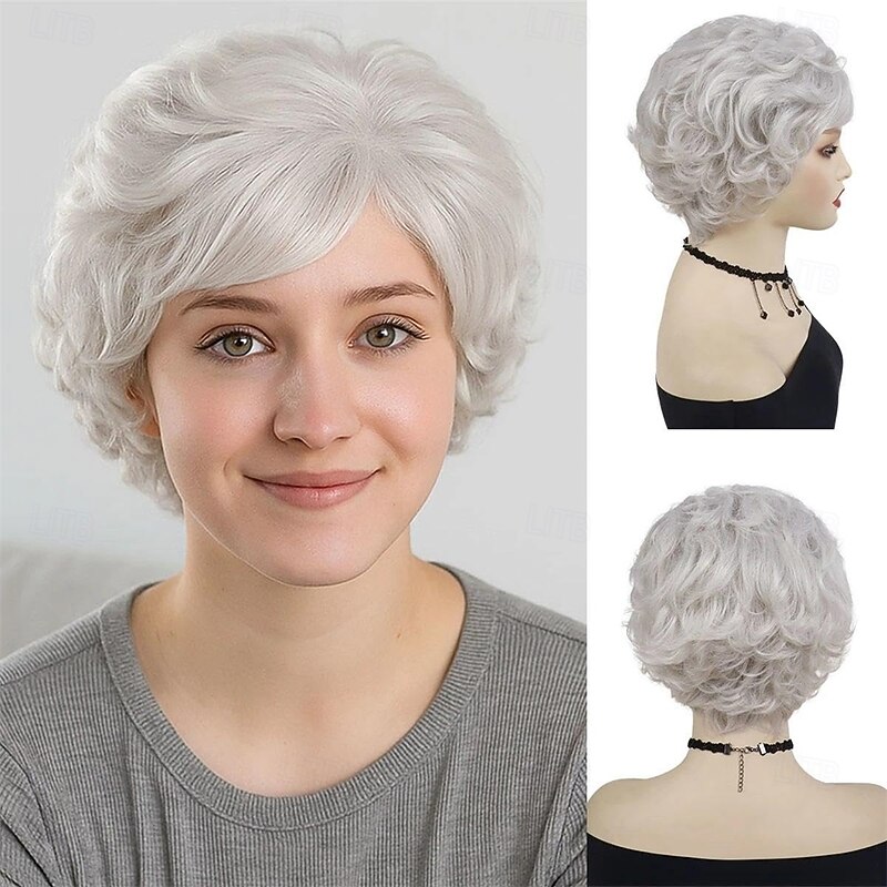 $21.99 - Synthetic Short Grey Curly Wigs for Senior Women Silver Grey Hair Layered Pixie Cut Hair Wig with Bangs Fluffy Wavy Wigs Old Lady Daily Granny Halloween Costume Party 2025. Shop for cheap Older Wigs online? Buy at lightinthebox.com on sale today!