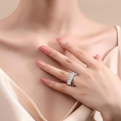 Ring size: 5Item width: 6 millimetersMaterial: StoneMetal type: Sterling SilverMetal weight: 8 gGem type: Created MoissaniteStunning Brilliance: The ring showcases 3 row round cut D color VVS1 moissanite stones, providing exceptional sparkle and fire that rivals traditional stonePremium Material: Made from authentic 925 sterling silver, this mens moissanite wedding band ring is not only rugged but also hypoallergenic, making it suitable for sensitive skinTimeless Design:The eternity band design symbolizes never-ending love, making it a perfect choice for engagements, weddings, or anniversariesComfort Fit: Crafted with a smooth interior, this size 7-13 ring ensures all-day comfort, allowing her to wear it effortlessly on any occasionEco-Friendly Choice: Choosing moissanite over natural stone is an environmentally conscious decision, as it is lab-created and ethically sourced without compromising on beauty Perfect for everyday use. excellent materials and excellent craftsmanship ensure long-lasting durability.