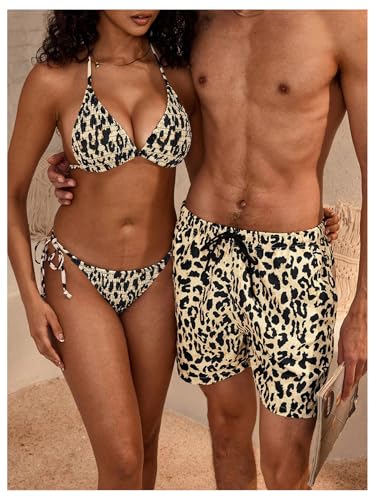 HOT ! SHENHE Men's Cheetah Print Swim Trunks Drawstring Waist Straight Leg Y2k Beach Board Shorts