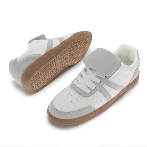 Rihero Women's Fashion Sneakers Tennis Walking Shoes Lace-Up Comfortable Non Slip Casual White Sneakers Size 8.5 6