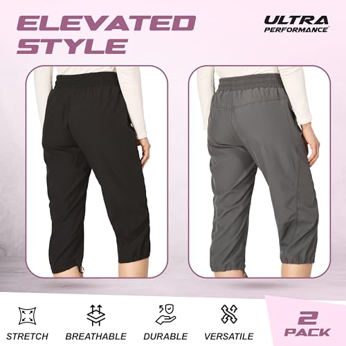 Ultra Performance Capri Pants for Women 2 Pack Womens Capris Hiking Capri Pants Summer Clothes for Women (Avail in Plus Size) 2