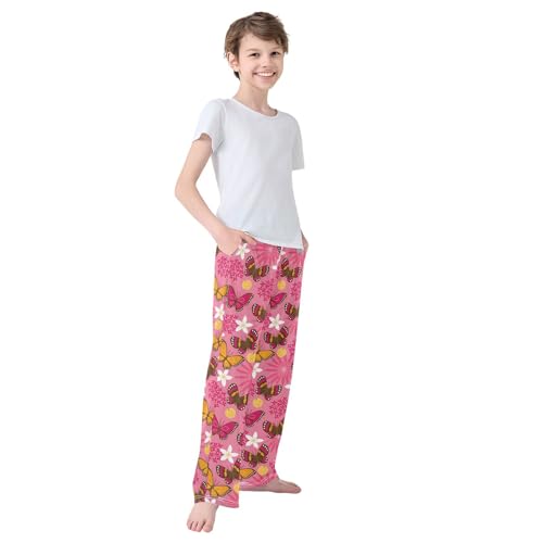 Butterfly Flower Orange Boys Pants for Kids Jogger Pants with Pockets S-XL 4