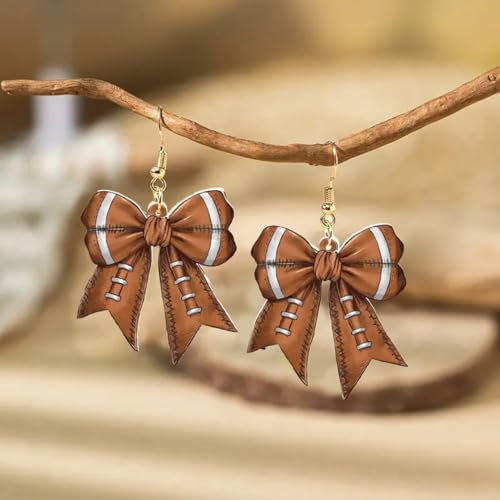 HOT ! Baseball Football Bow Earrings for Women Game Day Outfits Softball Fan Jewelry Gift Football Sport Baseball Mom Dangle Accessories for Sports Fans