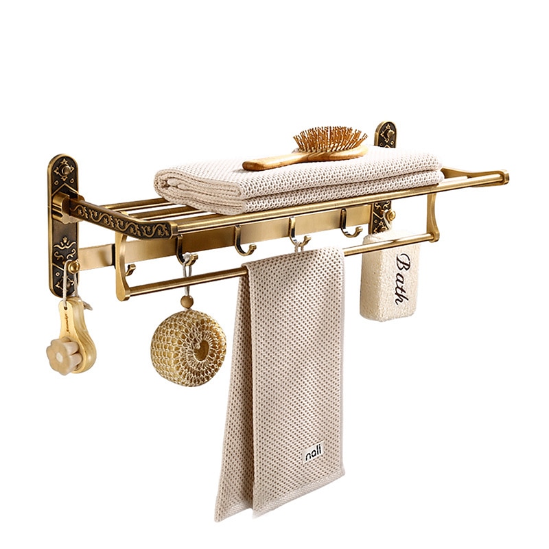 More information about Multilayer Towel Bar with 7 Hooks Foldable Antique Carved Aluminum for Bathroom Wall Mounted 1pc