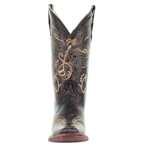 More information about Corral Boots Women's Western 13.5in Shaft Dragonfly Distressed Brown/Bone Embroidered Square Toe Boots