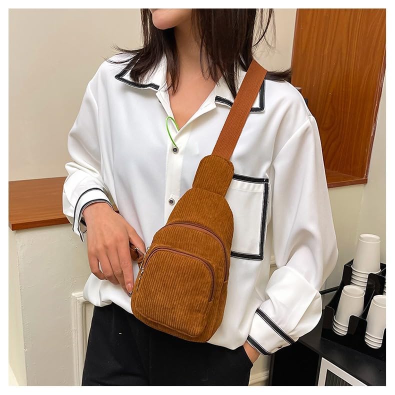 Corduroy Sling Bag Fanny Pack Crossbody Purse Mini Backpack Tote 1