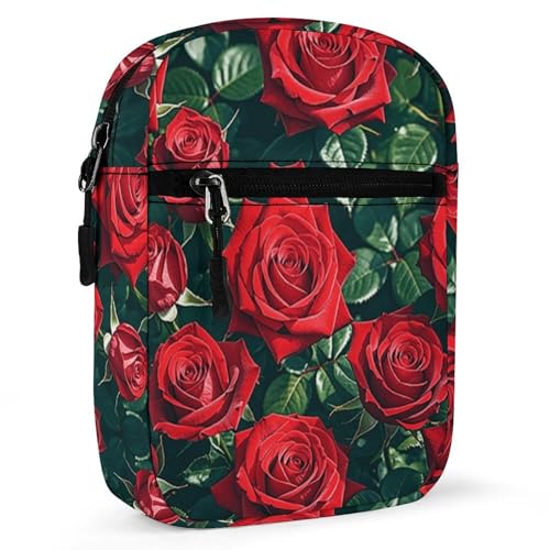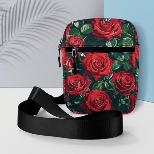 Personalized Small Crossbody Bag Water Resistant Messenger Bags Mini Red Rose Romantic Printing SlingBag For Men Women 1