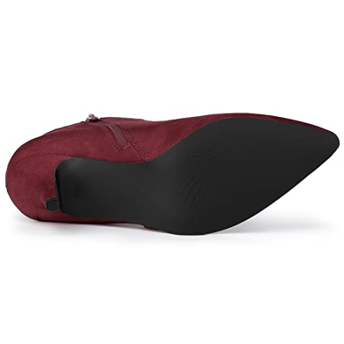 Allegra K Women's Pointed Toe Side Zip Stiletto Heel Burgundy Ankle Booties 6 M US 5