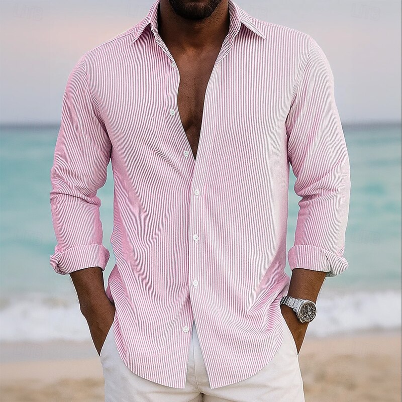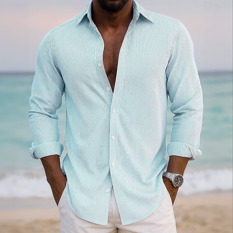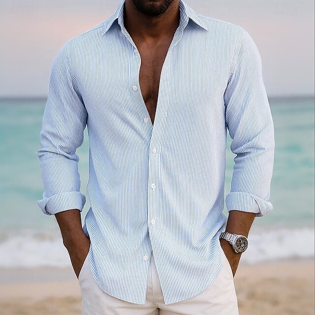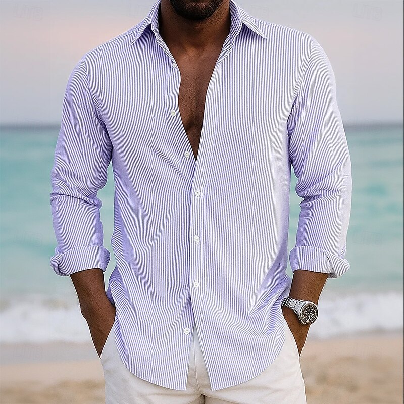 More information about Men's Striped Shirt Button Up Shirt Casual Dress Shirt Long Sleeve Fashion Casual Office Dailywear Spring Fall Turndown 3D Print Linen Like Shirt White Pink Blue Purple Green