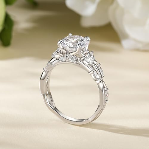 HOT ! Jeulia 3.5 Carat Butterfly Engagement Ring for Women White Diamond 925 Sterling Silver Branch & Leaves Wedding Band Ring Solitaire CZ Anniversary Promise Rings Romantic Gift with Box