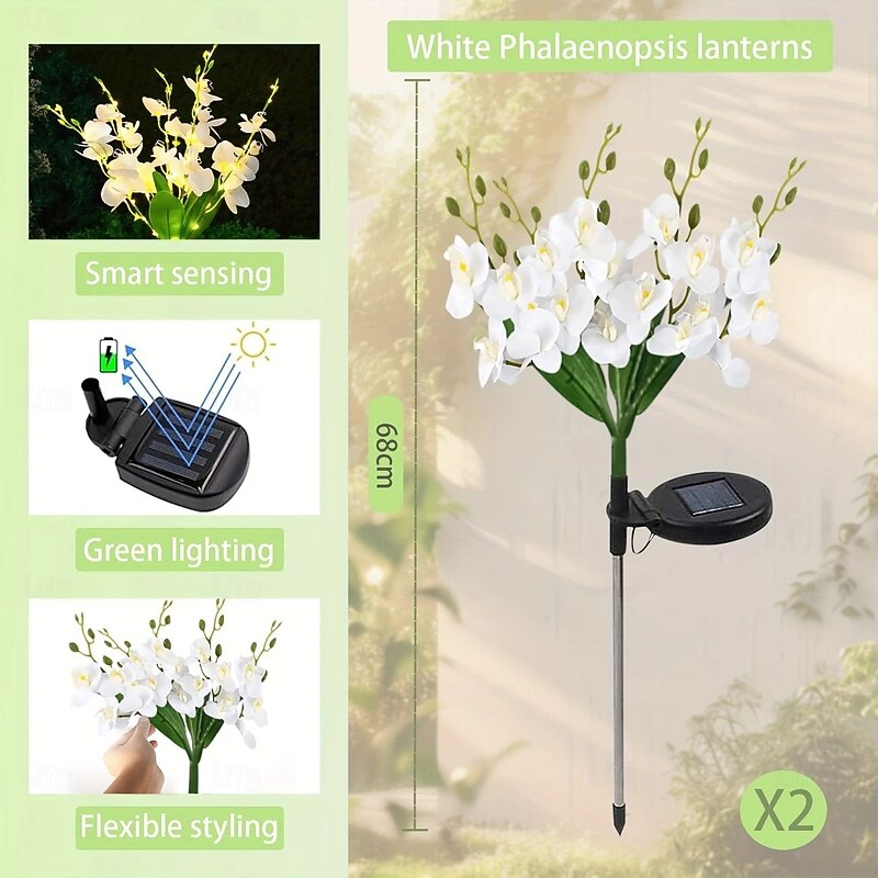 More information about 2PCS Solar Outdoor Waterproof Flower Lights Patio Lights Phalaenopsis Orchid Flower Lawn Light for Garden Terrace Yard Pathway Holiday Atmosphere Landscape Decoration