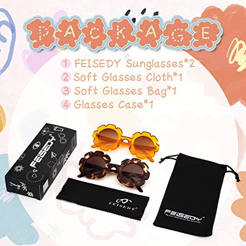 FEISEDY 2 Pack Kids Flower Sunglasses Girls Boys Toddler Beach Party Holiday Round Cute Sun Glasses Age 1-10 B2315 2