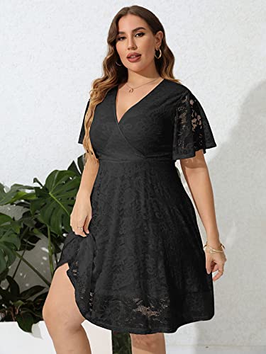 SCOMCHIC Women Plus Size Lace Cocktail Dresses Faux Wrap V Neck Short Sleeve Flowy A Line Wedding Guest Midi Dress 6