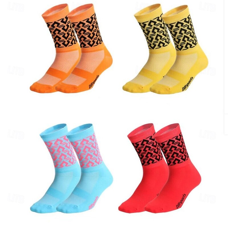 HOT ! Socks Cycling Socks Bike Socks Sports Socks Athletic Socks Camping / Hiking Hiking Outdoor Exercise Bike / Cycling High Elasticity Comfortable Breathable 1 Pair Grid / Plaid Geometic Letter & Number
