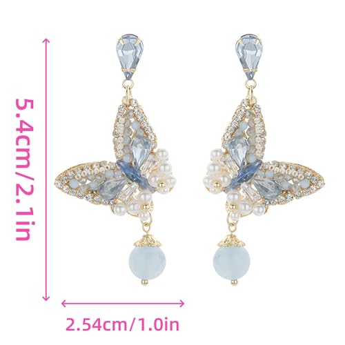 • ❤ Blue Butterfly Teardrop Crystal Drop Earrings For Women ❤: Blue Gemstone Large Butterfly Dangle Earrings, The dazzling color of Crystal, more attractive to the eye.