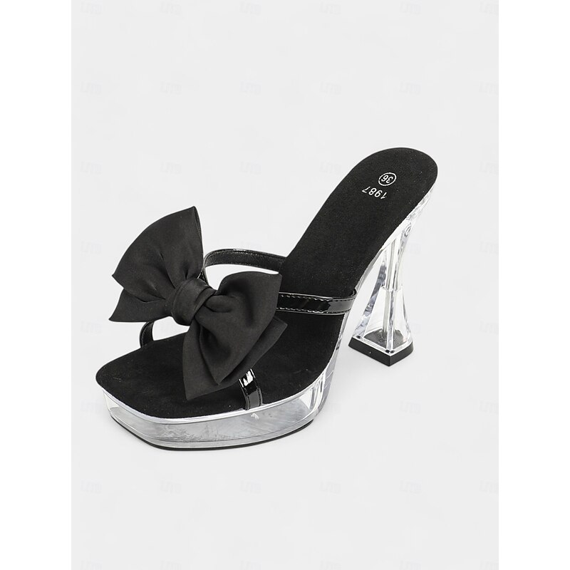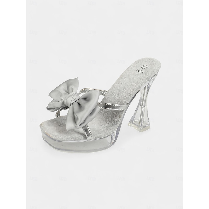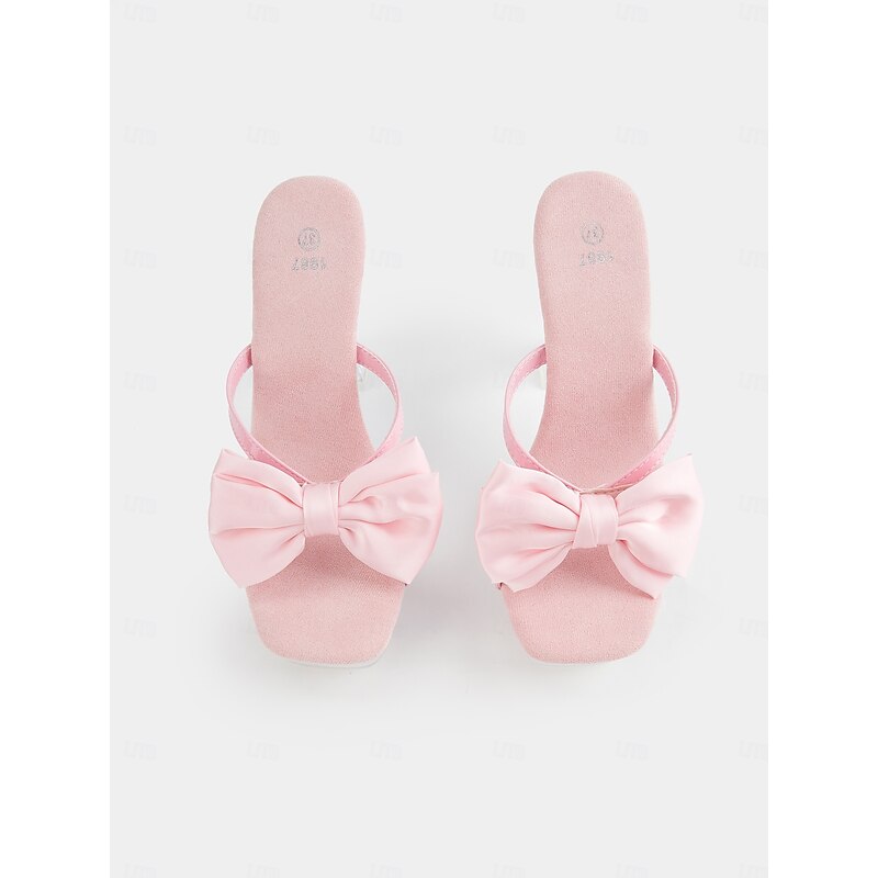 HOT ! Women's Pink Satin Bow Platform Heels with Clear Stiletto Design – Stylish Bridal Shoes for Weddings and Special Occasions
