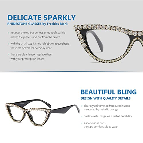 Freckles Mark Bedazzled Rhinestone Bling sunglasses for Women Sparkly Diamond Glasses Vintage Retro Cat Eye 1