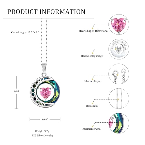 Celestial Moon Necklace – Sterling Silver Necklace with crystal ring 'I Love You to the Moon and Back' Secret Engraving | Personalized Birthstone Gift for Her Birthday, Anniversary 7
